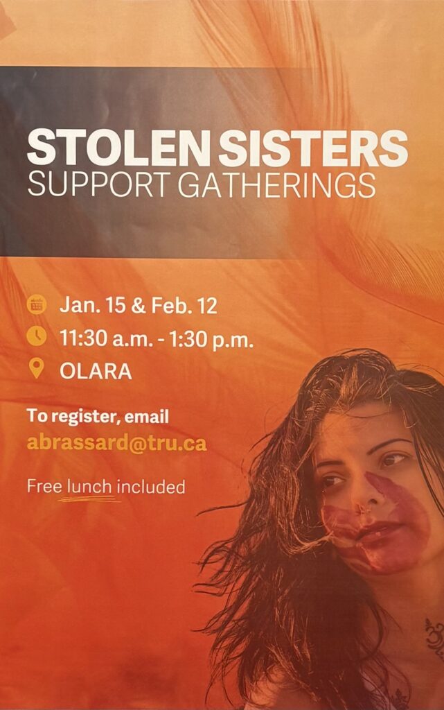 In a collaborative process, TRU’s Indigenous Student Services, Indigenous education, SVPR, Counceling and the Wellness Centre have been holding a support group for an open discussion on missing and murdered indigenous women and girls.